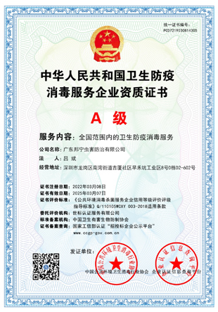 消毒服務企業資質證書
